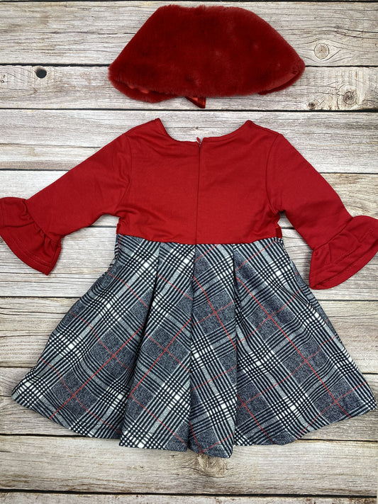 Vestito in poliestere manica a tre quarti e collo in finta pelliccia