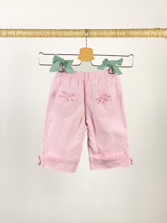 Produttore:SarabandaPantaloncini a mezza gamba in lino rosa arricchiti con pailettes e ricami. Vita elasticata.