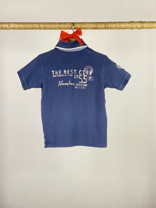 Produttore:BrumsT-shirt polo a manica corta in cotone blu, colletto e giromaniche elasticizzati con riga bianca, quattro bottoni sul davanti e tasca con bottone lato cuore. Spacchetti ai fianchi, applicazione scudetto su spalla destra e stampa leggermente sbiadita sul retro