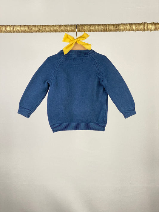 Produttore:MangoPullover in cotone jacquard blu con apertura bottoncini sulla spalla sinistra.