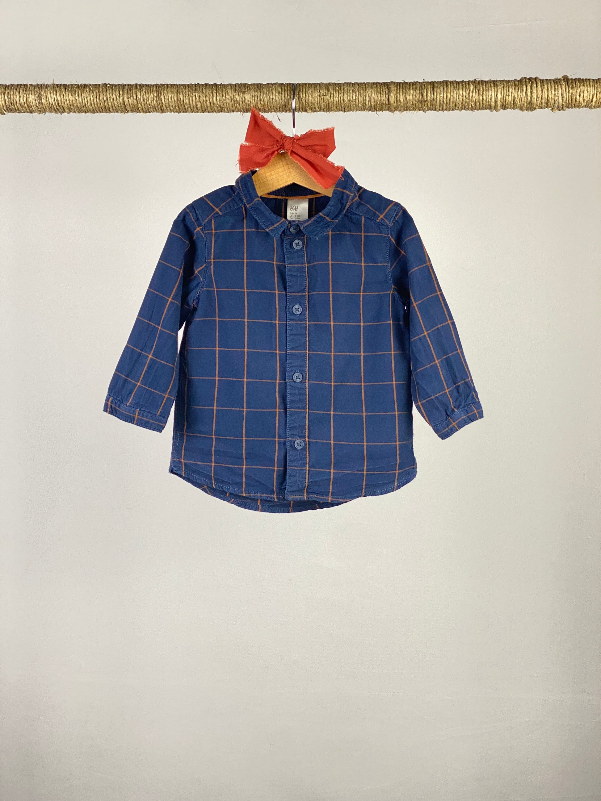 Camicia manica lunga blu a quadri arancioni
