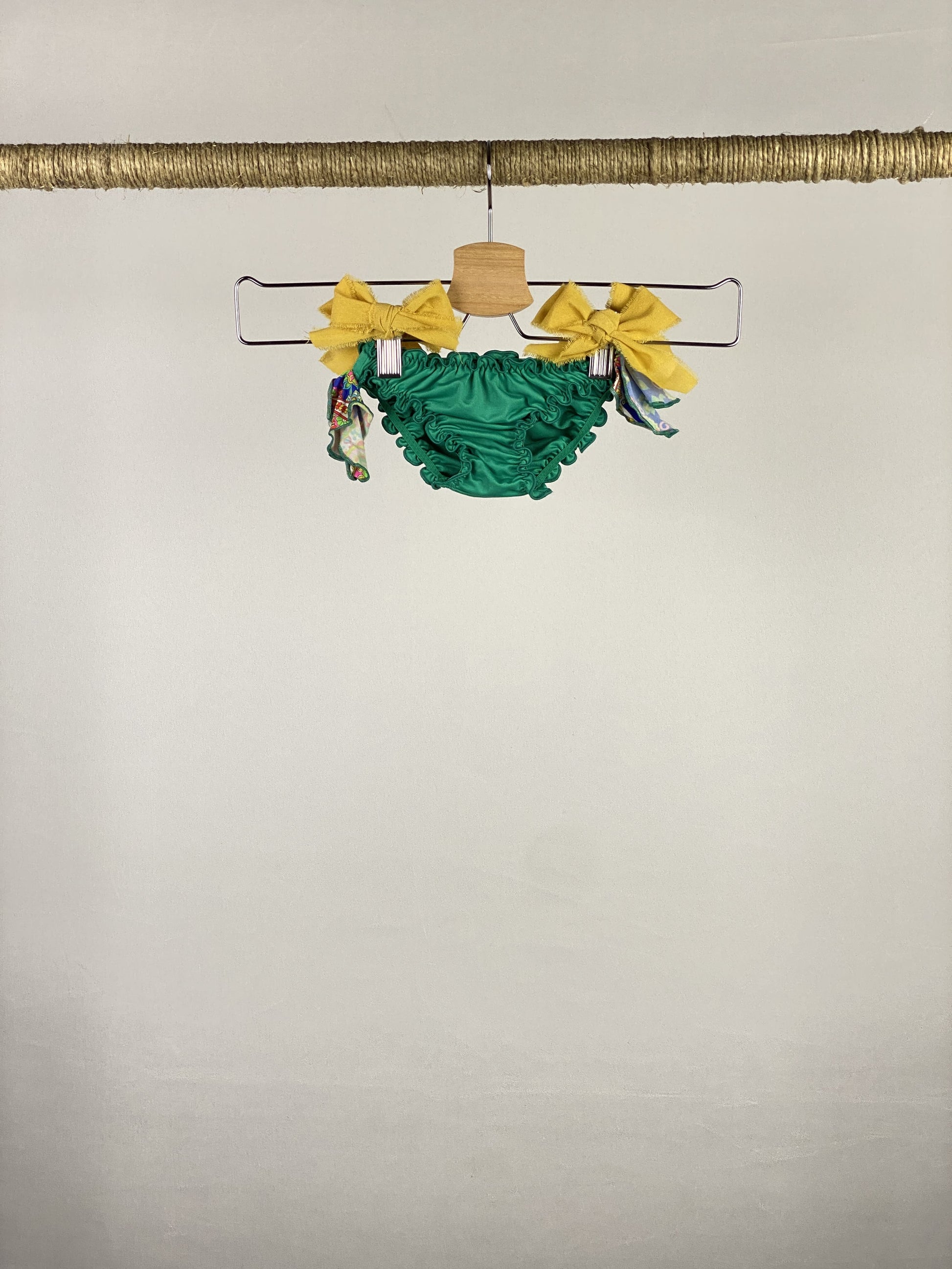 Costume a mutandina tinta unita con fiocchetti in fantasia