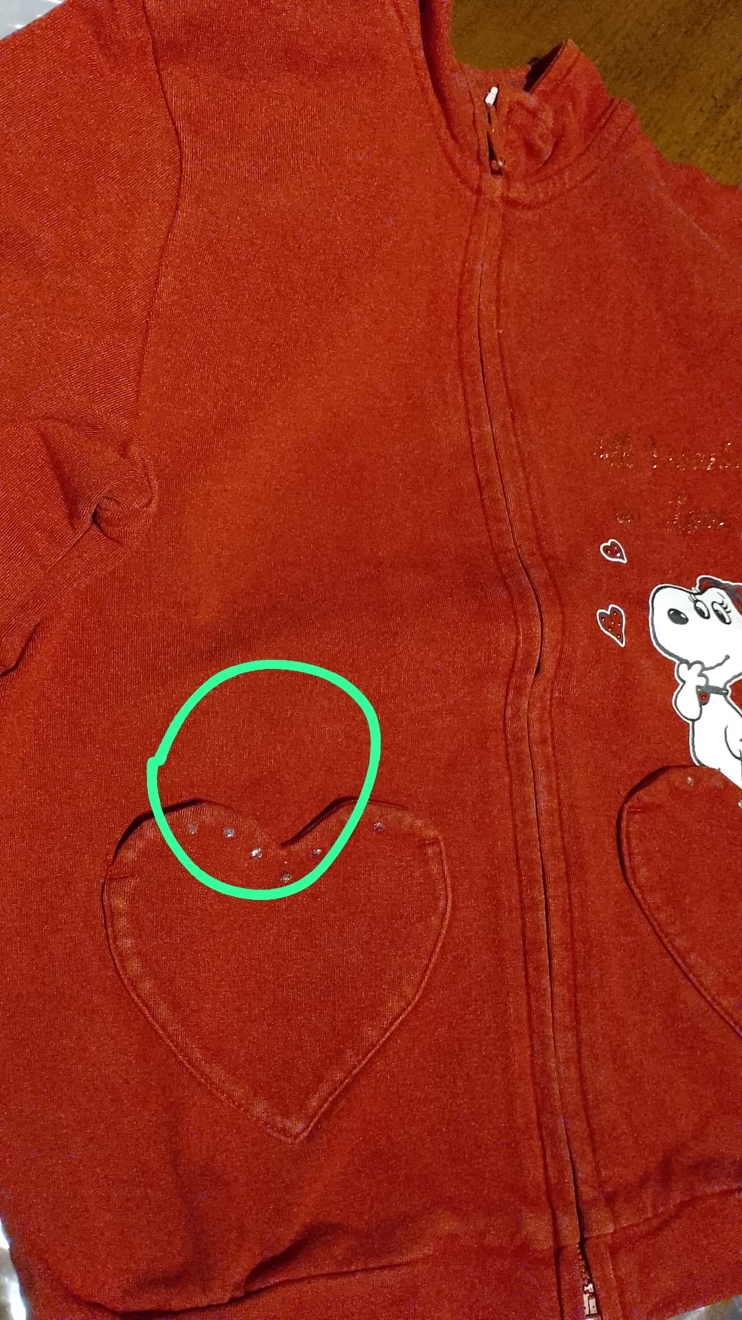 garzato con macchia vicino a una tasca