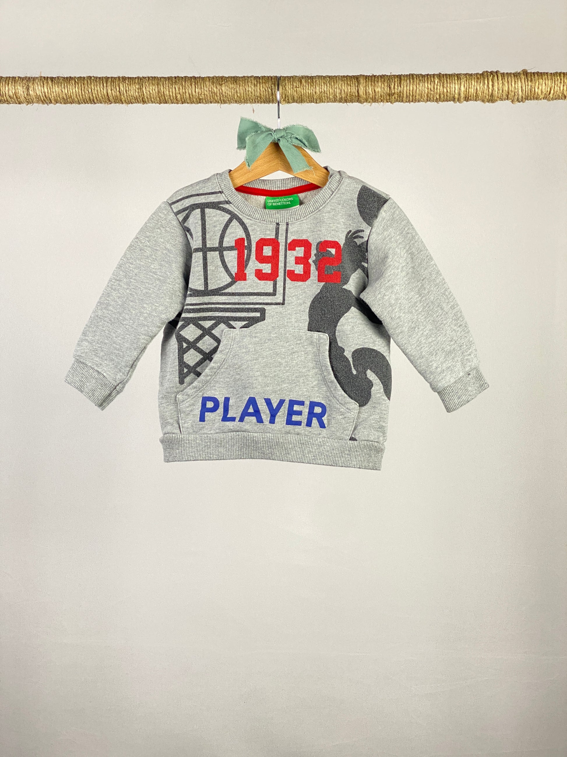 Felpa girocollo in cotone non garzato con stampa sul davanti e tasca a marsupio.