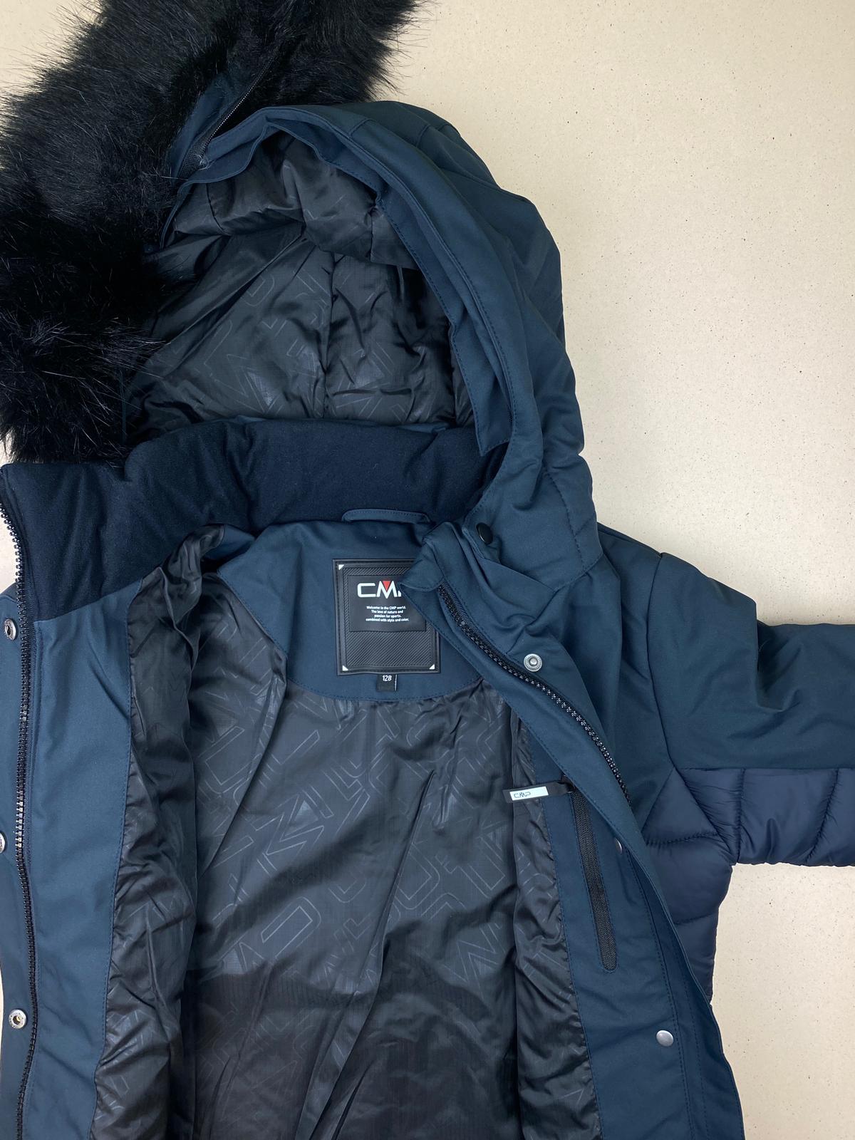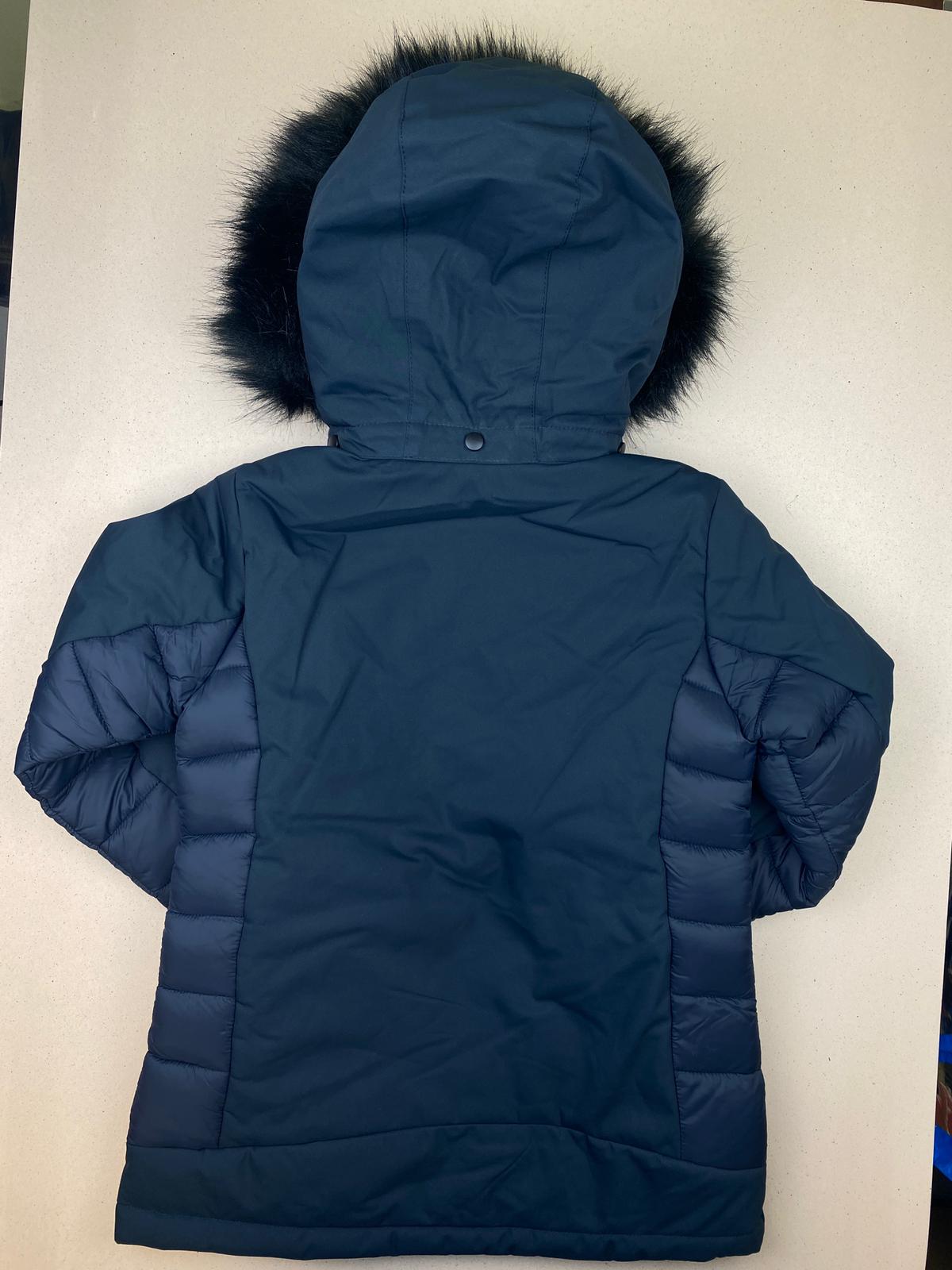 Giacca piumino con cappuccio in finta pelliccia staccabile, doppia chiusura (bottoni e zip). Caratteristiche tecniche: feel warm flat, 7.000 WP, 3000 MVP.
