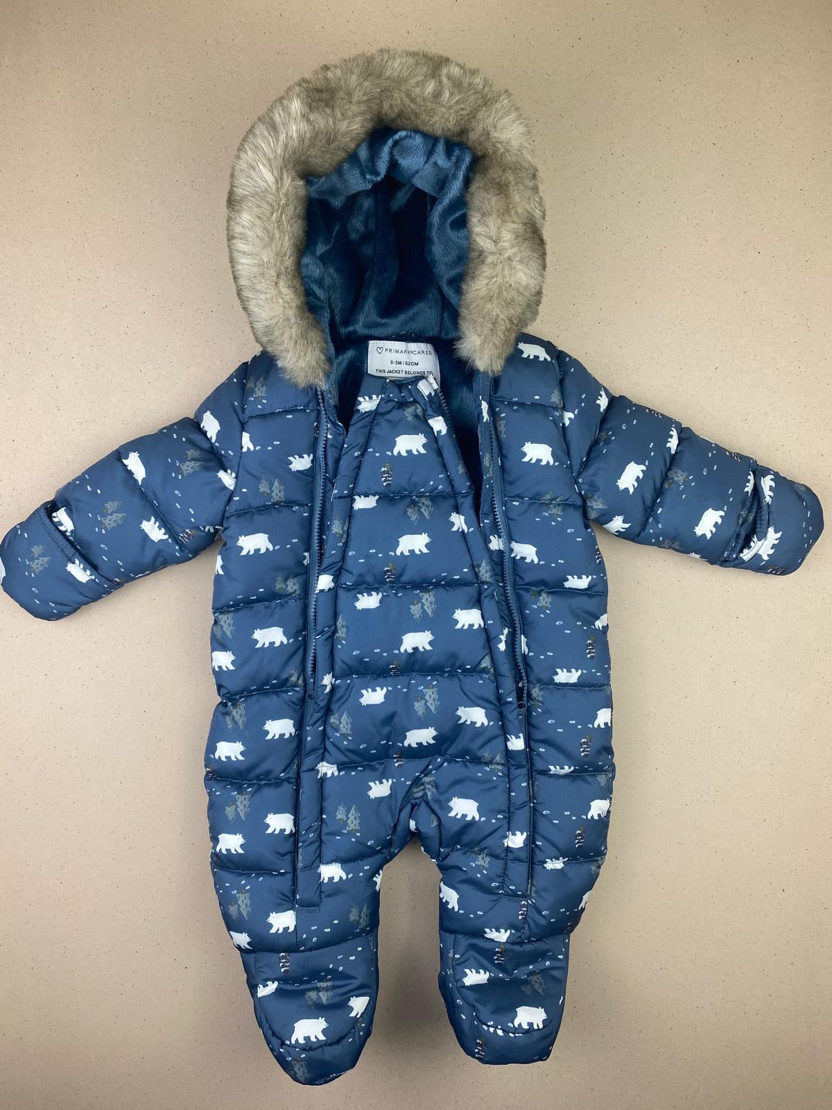 con piedini e guanti incorporati , doppia zip, interno peloso