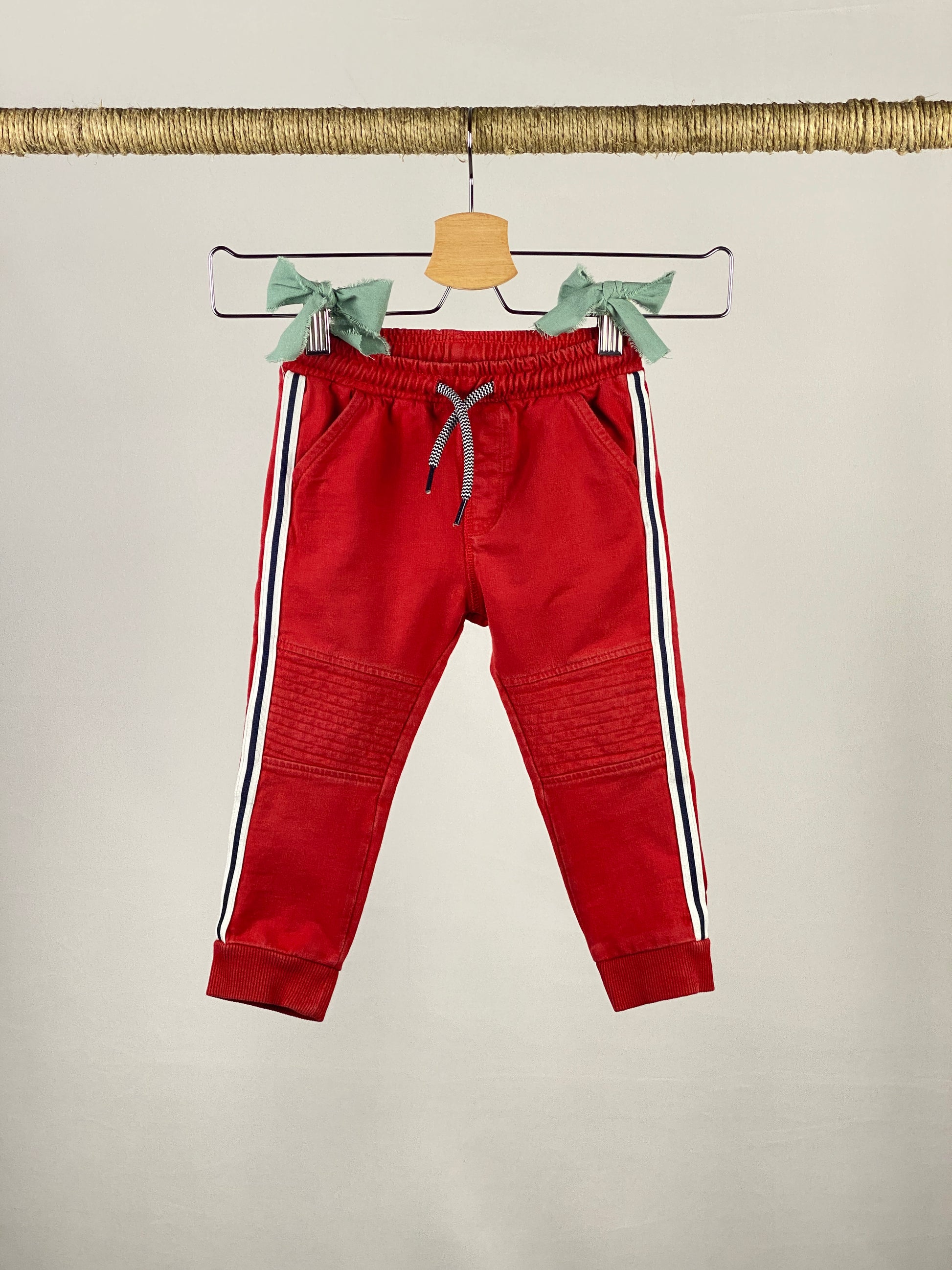 Pantaloni in felpa di cotone non garzata con bande laterali, toppe biker, coulisse in vita e chiusi sul fondo.