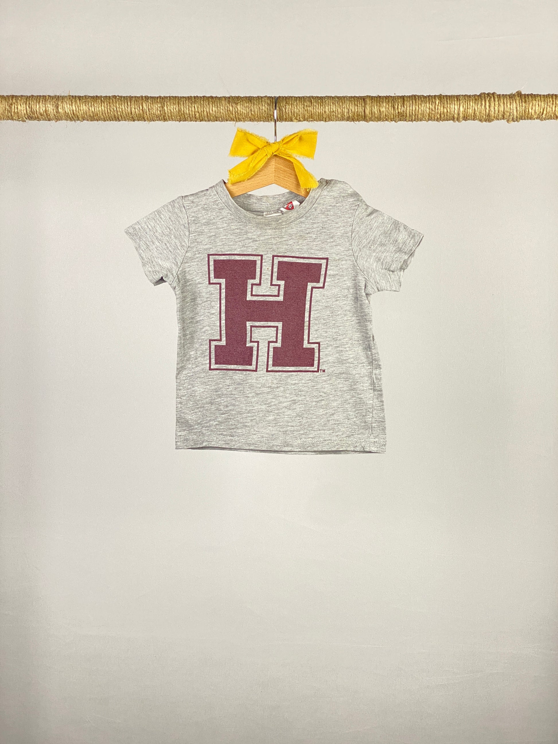 T-shirt manica corta in cotone grigio stampa con logo Harvard University rosso bordeaux sul davanti. Piccola macchia sul logo