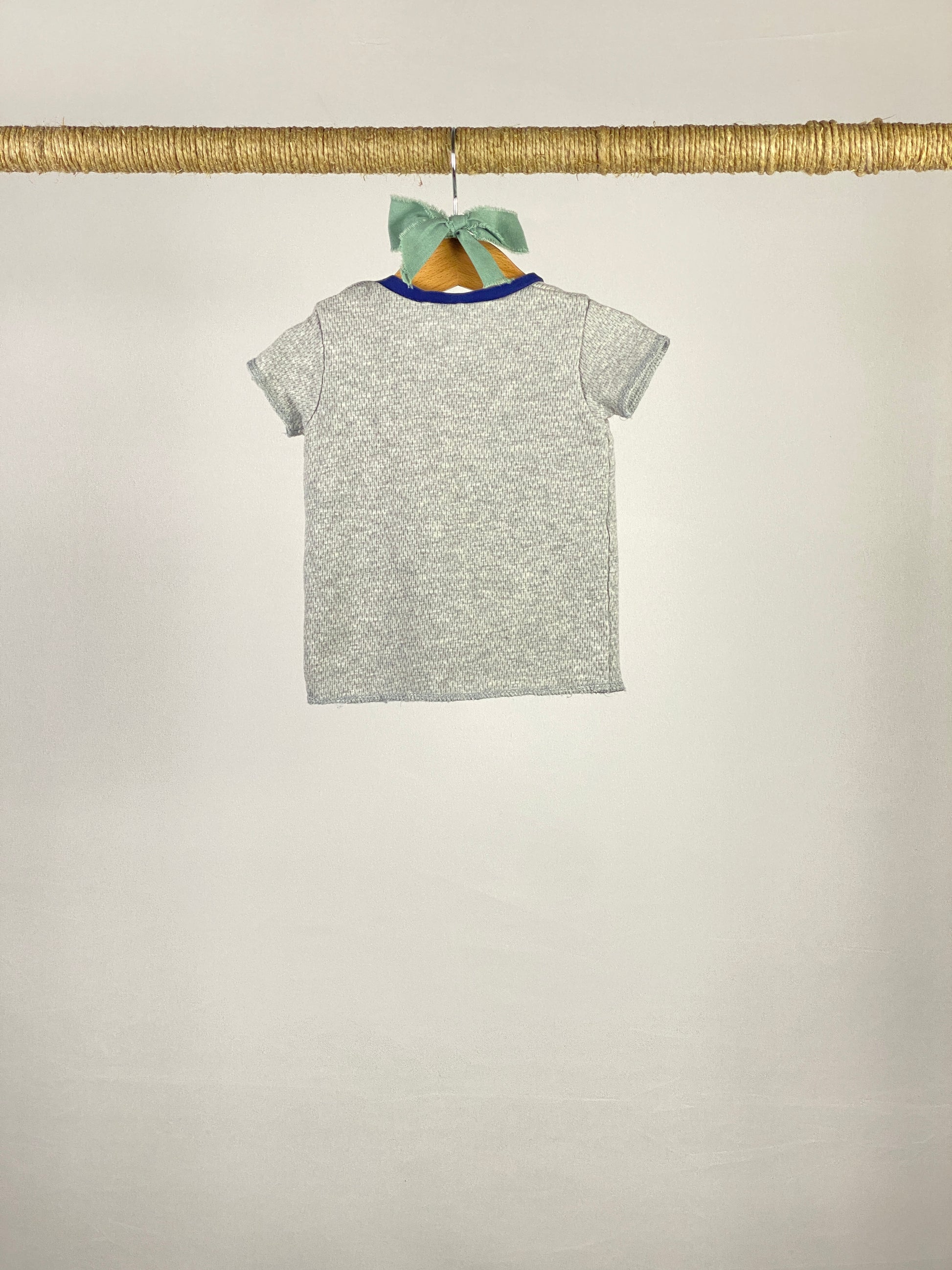 T-shirt con maniche corte in costina di cotone, Taschina lato cuore con bocca e occhietti. Colletto a contrasto.